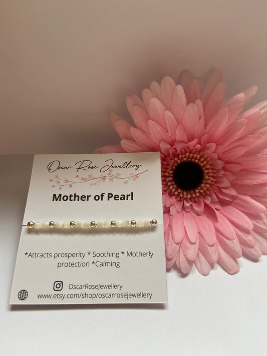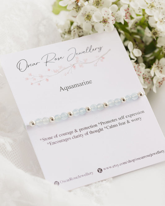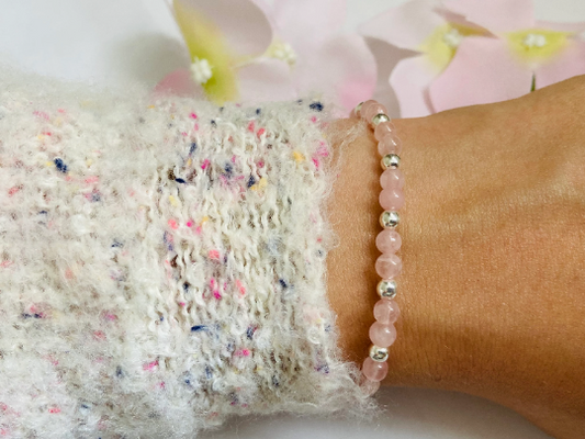Rose Quartz & Sterling Silver Dainty Bracelet