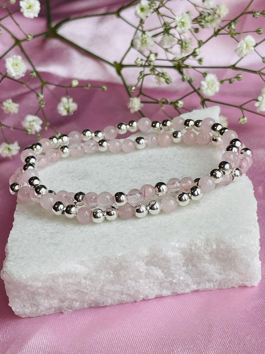 Rose Quartz & Sterling Silver Dainty Bracelet