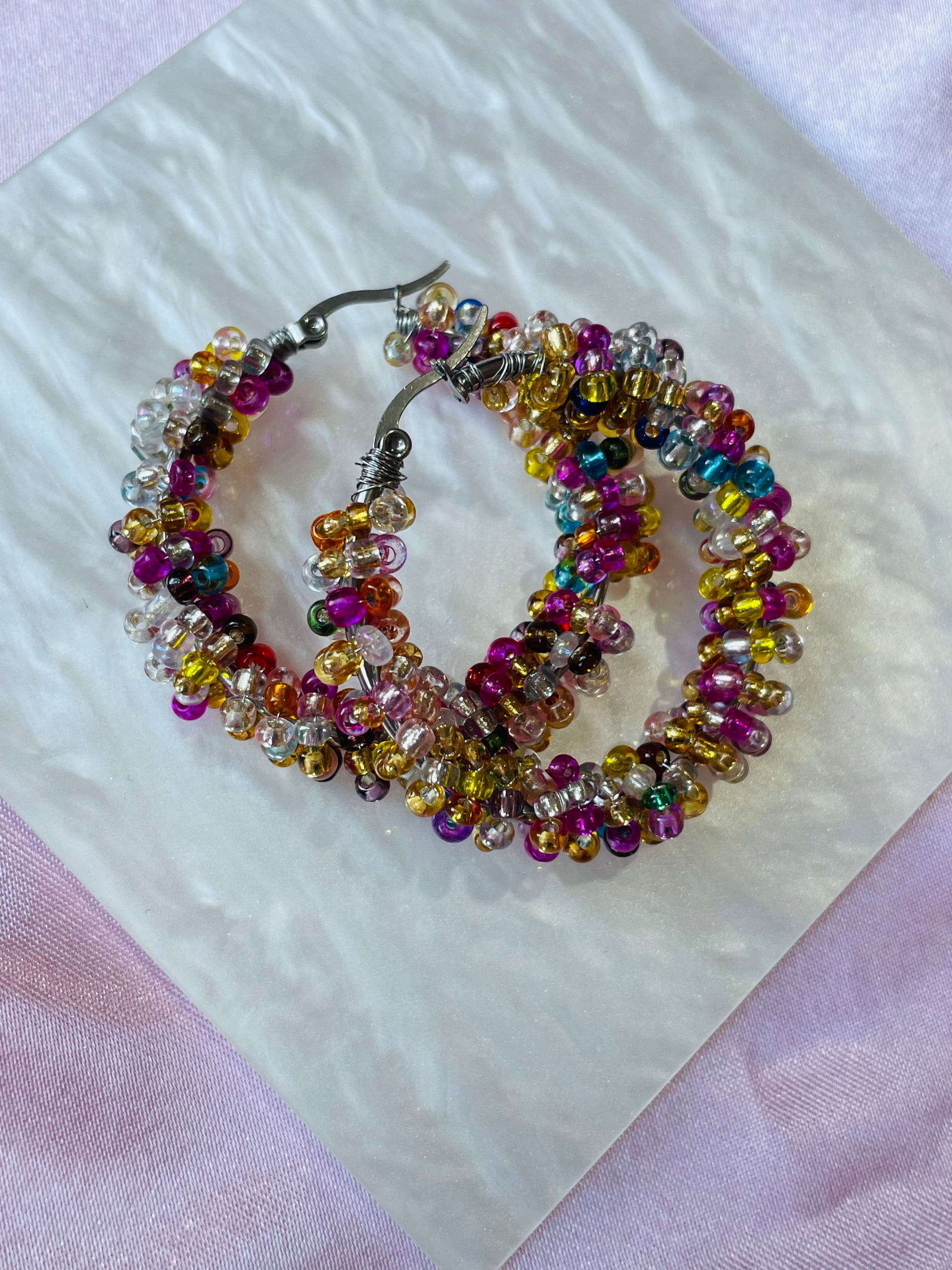Autumn Beaded Hoop Earrings – Handmade Colourful Seed Bead Hoops