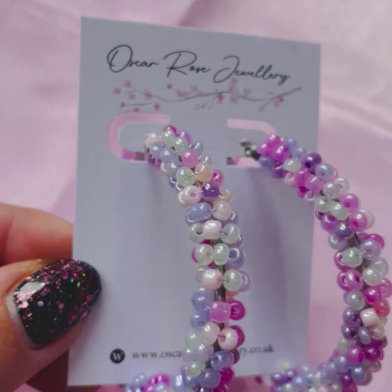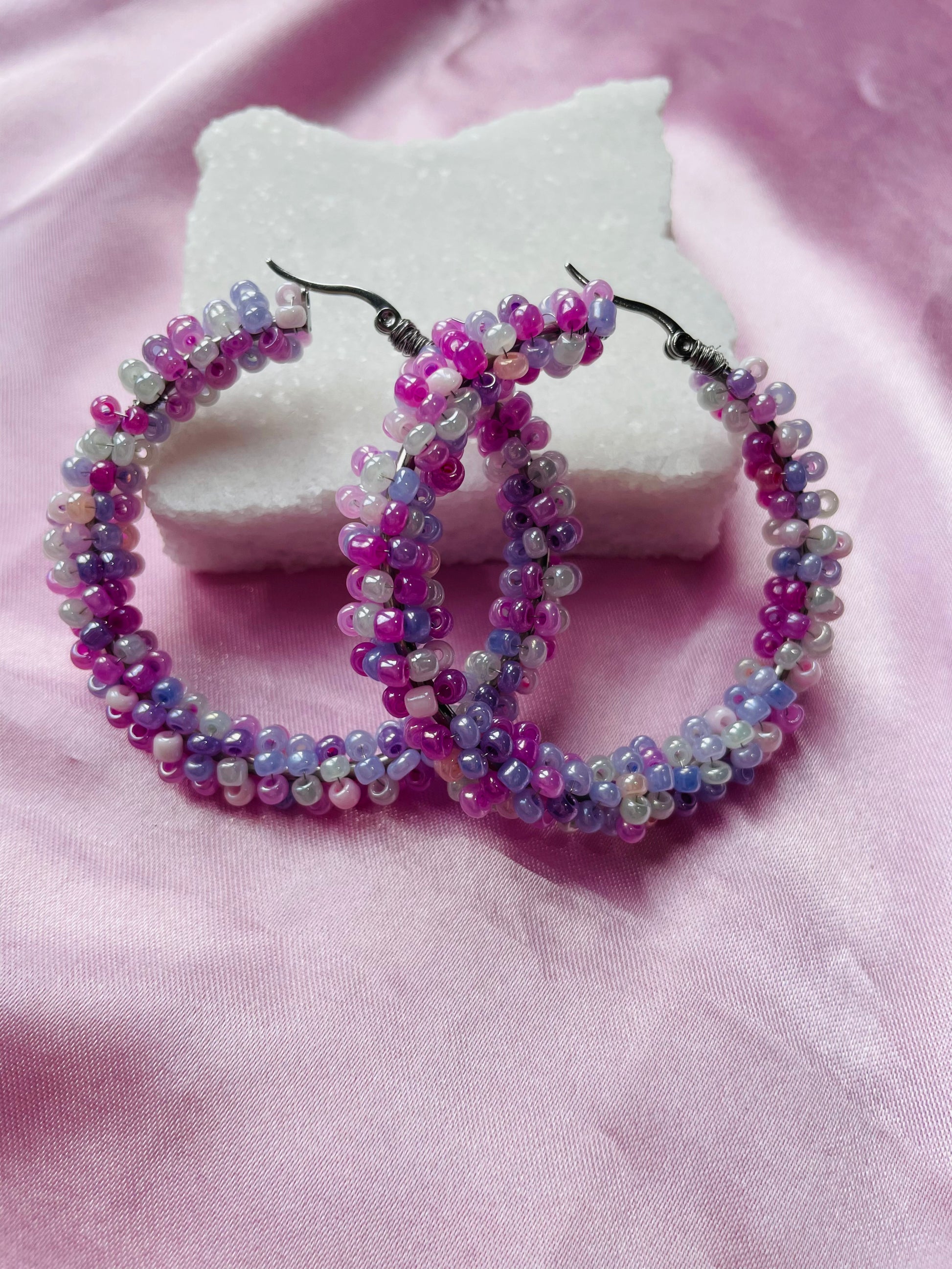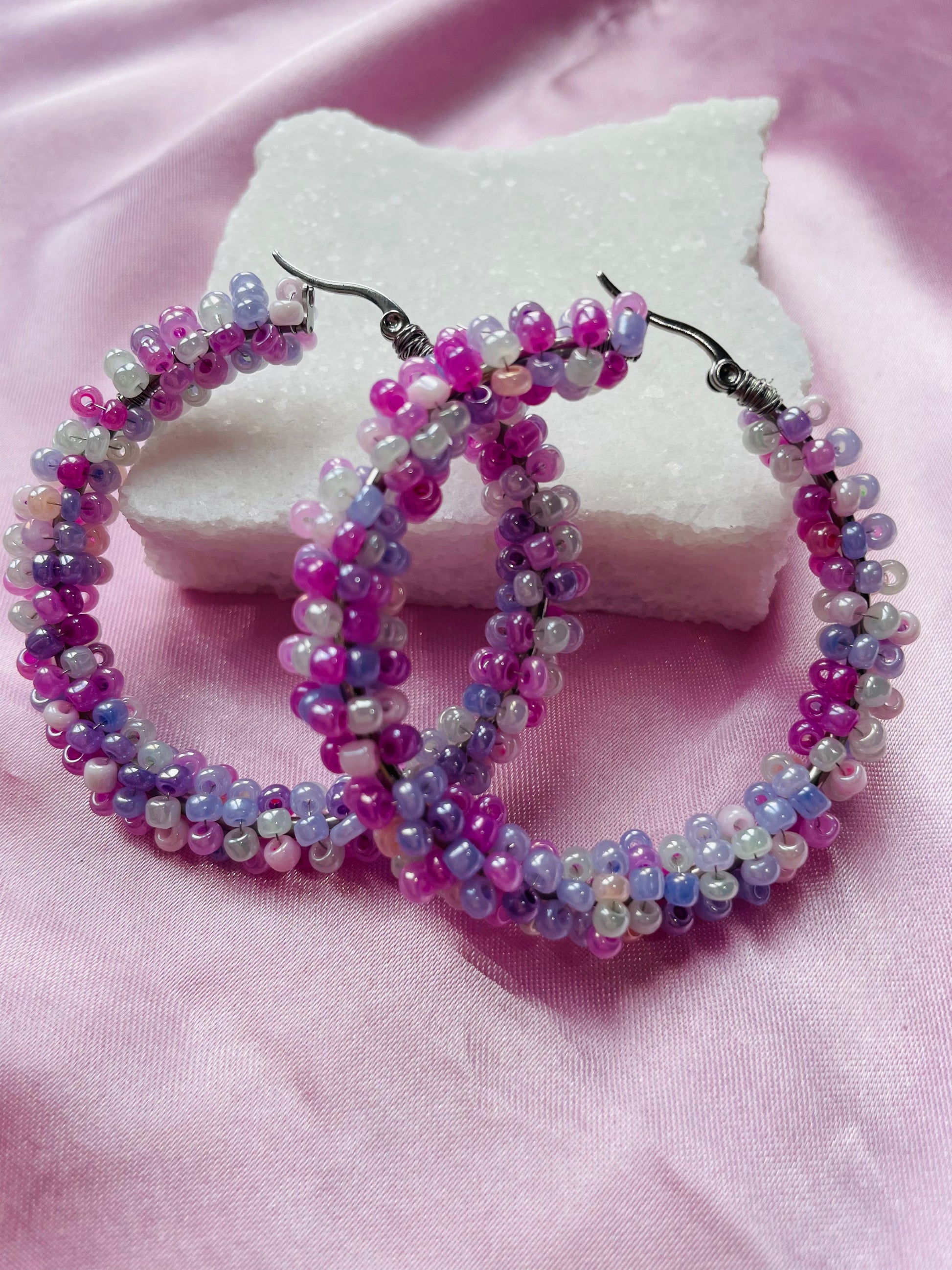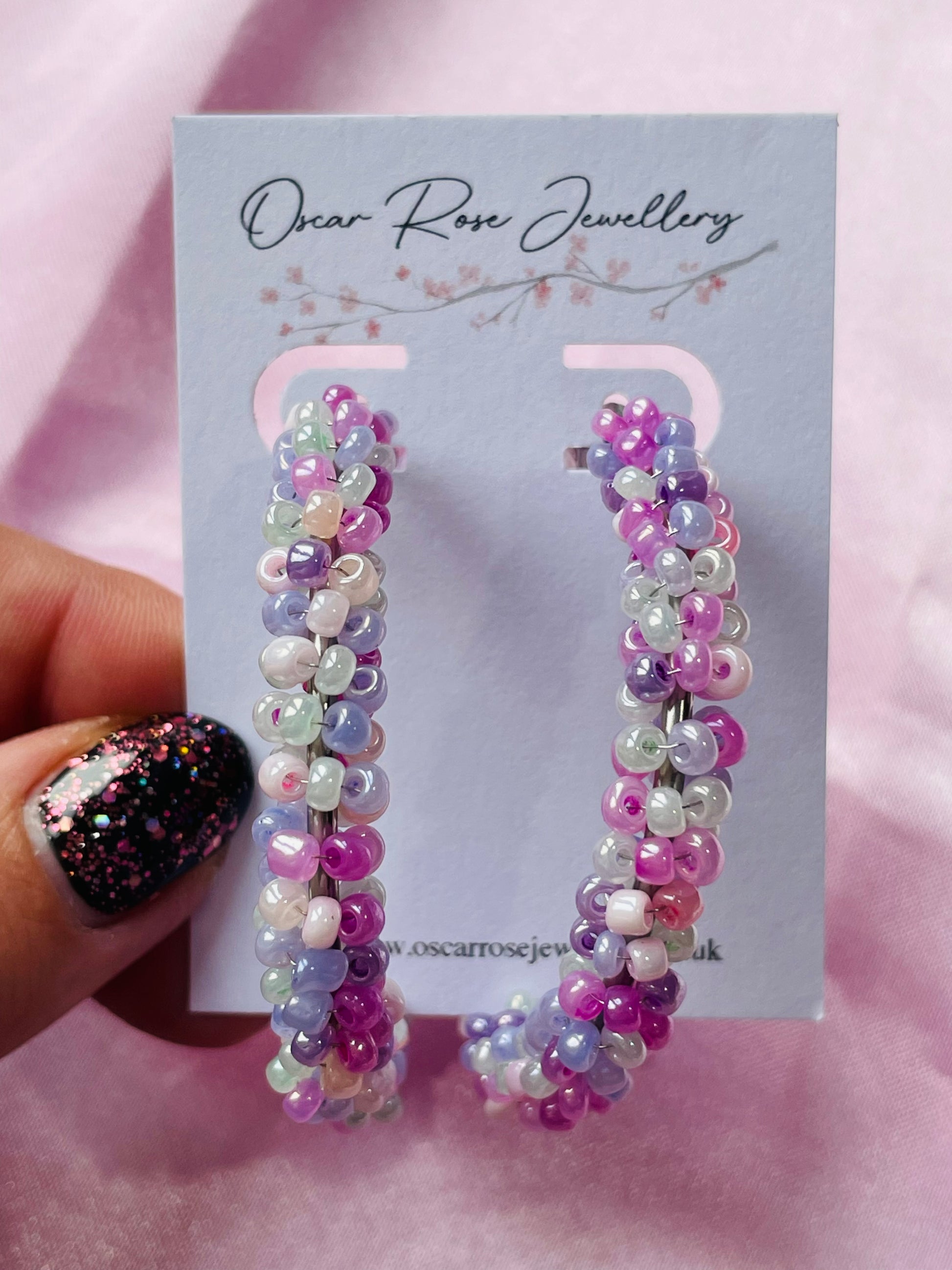 Beaded Hoop Earrings – Handmade Colourful Seed Bead Hoops
