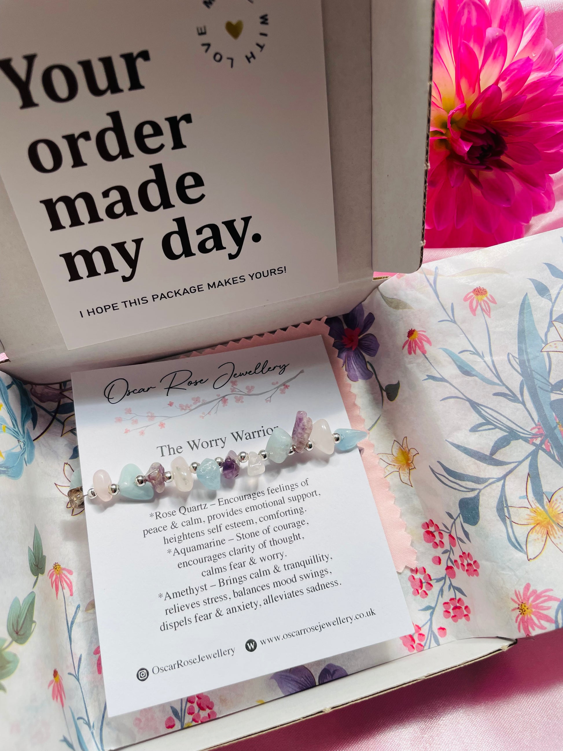Worry Warrior Bracelet - Amethyst, Rose Quartz & Aquamarine.